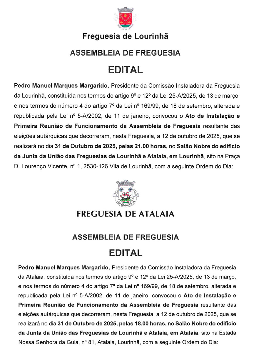 AvisosFeaturedNoticiaReuniões Editais de Tomada de Posse das Freguesias da Lourinhã e da Atalaia, a repor 21 Outubro, 2025 web_ufla